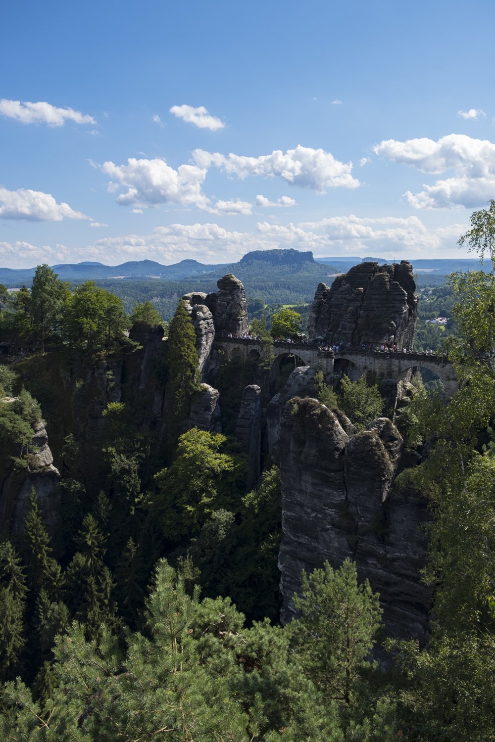 Startet euren Tag mit einer Wanderung zur berühmten Basteibrücke, einem der bekanntesten Aussichtspunkte des Elbsandsteingebirges. Die spektakuläre Aussicht auf die Elbe und die umliegenden Felsformationen sorgt für unvergessliche Eindrücke.